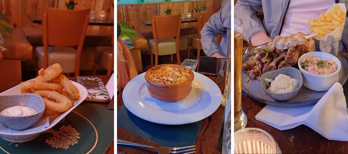 What great hidden gem this is. We came here yesterday early eve after looking on google maps for a nice place to eat after a few afternoon drinks with our friends . Rang and booked a table for 4 and the gent on the phone was very polite and accommodating. When we got there we were shown to our table and had a chat with the lovely lady host. Couldn’t believe it had been open 2 years and we had never been. Ordered our drinks and then food. We ordered starters, 2 of the chilli king prawns, a calamari and cheese croquettes. They came out and the portion’s were really good and piping hot.. not to mention delicious. For the mains we ordered moussaka, and the meat plater for 1 and our other couple ordered the platter for 2. When the mains came out I was a little jealous of the meat platters as they looked amazing , but then my moussaka arrived and it looked amazing and I can honestly say it was the best I’ve had ( it’s my go to dish when I’m in Greece or at a Greek restaurant in the uk). we all absolutely loved the food and were stuffed so no pudding for us this time but we will definitely be back to sample some more of the beautiful food they serve. We Highly recommend this restaurant for great food, service and price .